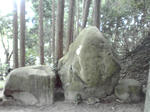 ようやくこの岩を盾にして、イザナミから逃げることができたという岩です。