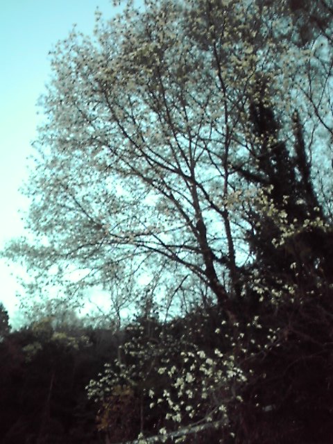 山には、こぶしの花?似た花があるようですが、木蓮ではないと思う。