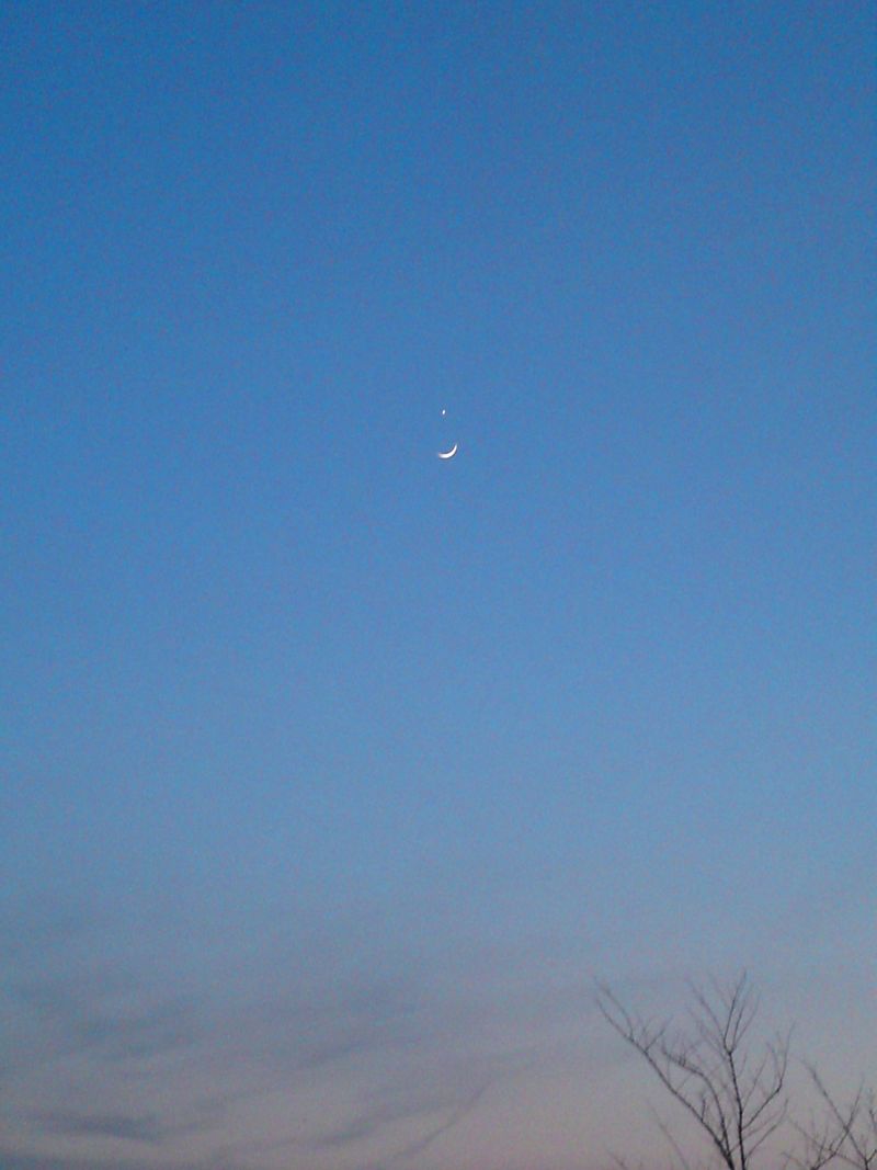お店の外にでると、三日月と金星が寄り添うように夜空に