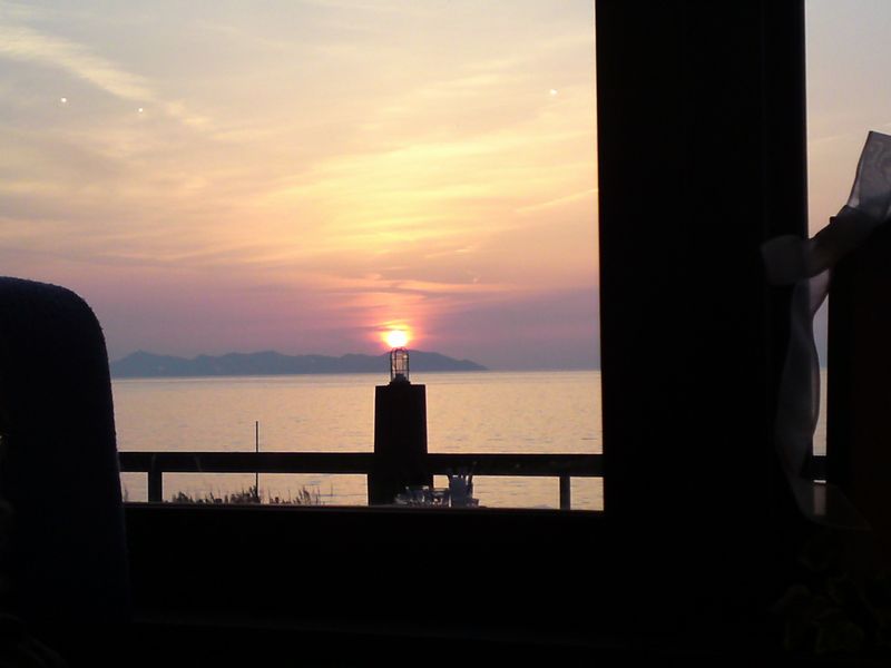 お店から観える夕日がとても綺麗で、食事が終わってからしばらく眺めて