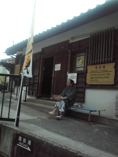 写真は、3か所ある外湯の、皐月湯の前です。1927年に出来た公衆浴場です。ほかに、御前湯とやよい湯がありましたが、入ってないです。温泉にきたのにね~(T_T)