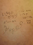 昨日、子供を迎えに主人と米子駅にいきました。到着まで、時間があったので駅前をうろうろして、ピアノピアノさんというイタリアンのお店に、行きました。夕食を済ませたあとでしたので、コーヒーだけの注文でしたが、快く対応してくださいました。そのお店の壁に、いきものががりの吉岡聖恵さんのサインがあり、お店の方に、了解をえて写メを撮らせていただきました。ちょっと、感激!