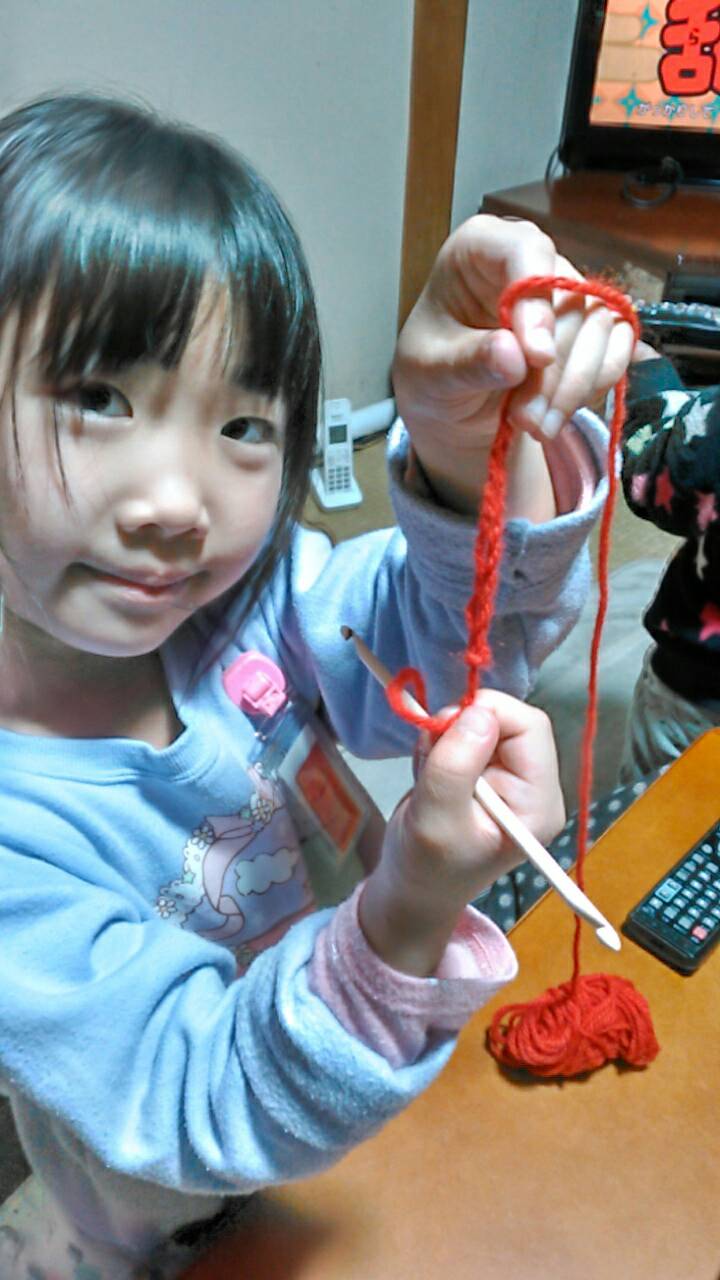 小学校1年生の孫が、編み物をしてみたいというので、かぎ針編みをまずしてみました。鎖編みを上手にしていました。何編もうかな!(^^)!