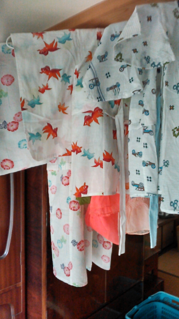 女の子の浴衣は、ザ!昭和という感じの柄で私の50年以上前のものだし、男の子の浴衣ももらいもので綺麗でも今風でもありませんが、嬉しそうに着てくれる孫と、嫌がらずに着させてくれるお嫁ちゃんに感謝です。