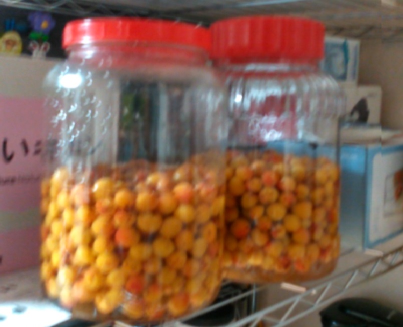 いつもは、塩で漬けますが、今回たまたまスーパーで「梅漬けのもと」を見つけたので、それを使って漬けてみた。